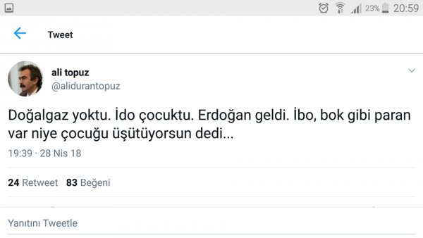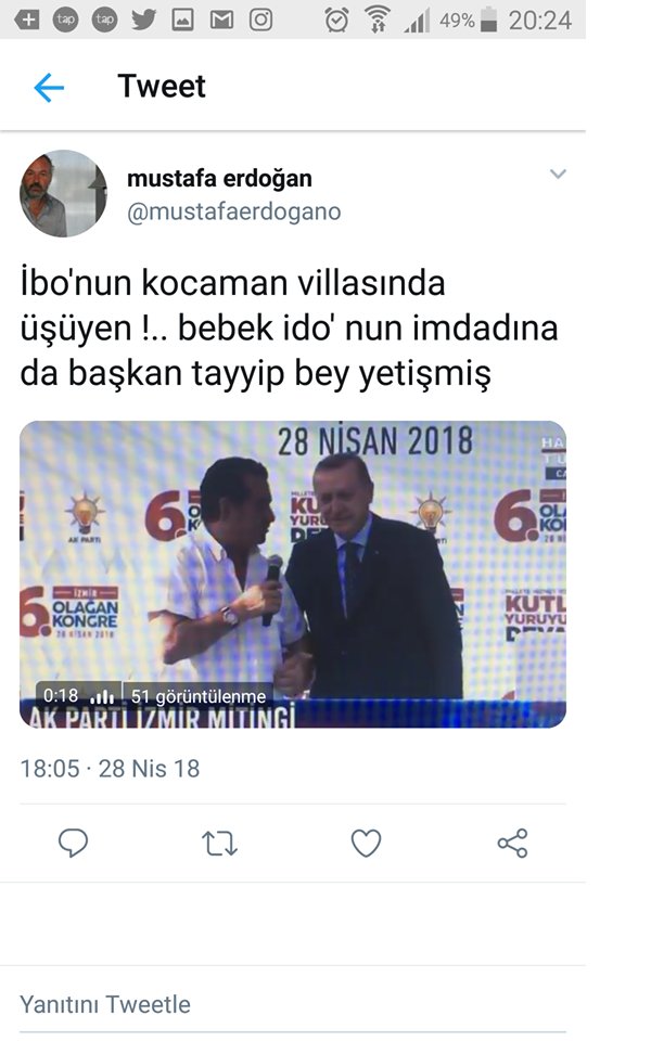 Tayyip Erdoğan’ın İzmir mitinginde sahneye çıkan İbrahim Tatlıses, Erdoğan’la ilgili ilginç bir anısını anlattı. Tatlıses, oğlu İdo iki aylıkken, villasında doğalgaz olmaması nedeniyle üşüdüğünü, bu yüzden dönemin İstanbul Büyükşehir Belediyesi (İBB) Başkanı olduğunu iddia ettiği Erdoğan’ı aradığını ve bunun üzerine doğalgaz bağlatıldığını söyledi. Ancak Tatlıses’in oğlu İdo 1992 doğumlu iken Erdoğan 1994’te İBB Başkanı olmuştu.