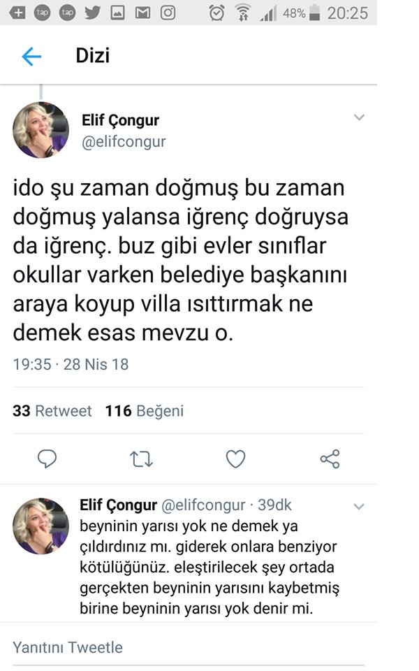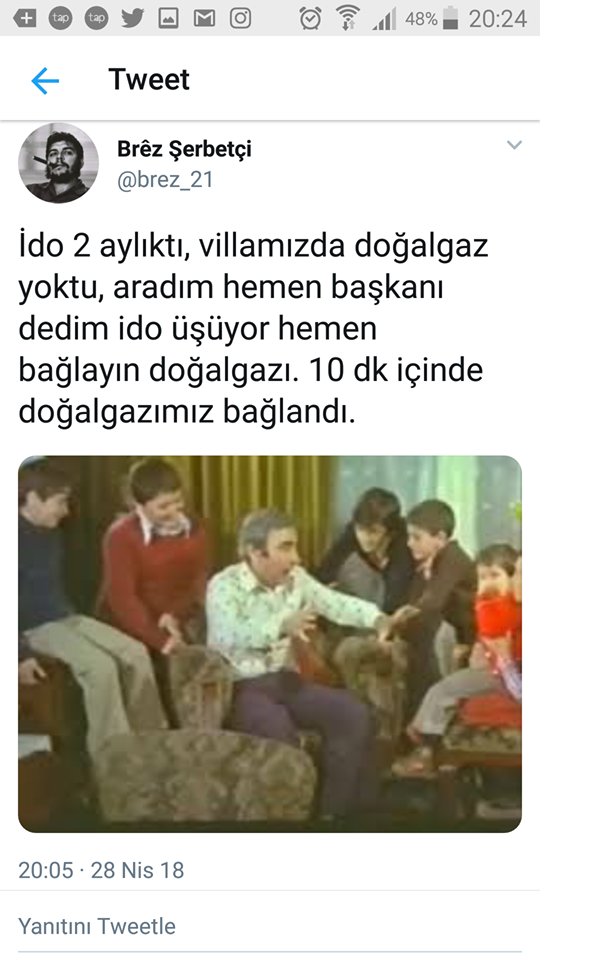"Ben bu insanın neyine tavım biliyor musunuz? İdo doğmuştu, iki aylıktı. Belediye başkanıydı İstanbul’da. Dedim ki “Sayın başkanım, bizim evimizde, yani orada bir koca villamız var ama üşüyoruz. Doğalgaz bağlanmış ama bizde yok.” Dedim ki “İdo iki aylık, üşüyor.” 10 dakika sonra aradı dedi ki “Yokmuş ama ben kendi şeyimden vereceğim.” Ve iki ay sonra doğalgazımız bağlandı ve İdo üşümekten kurtuldu.