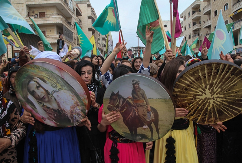 Türkiye’nin ÖSO gruplarıyla beraber 48 gündür Efrin'e yönelik operasyonu devam ederken, Rojava kentleri ile Irak, Filistin, İran gibi birçok ülkeden kadınların da Afrin’e gelerek destek verdiği 8 Mart etkinliği Newroz Parkı’nda başladı.