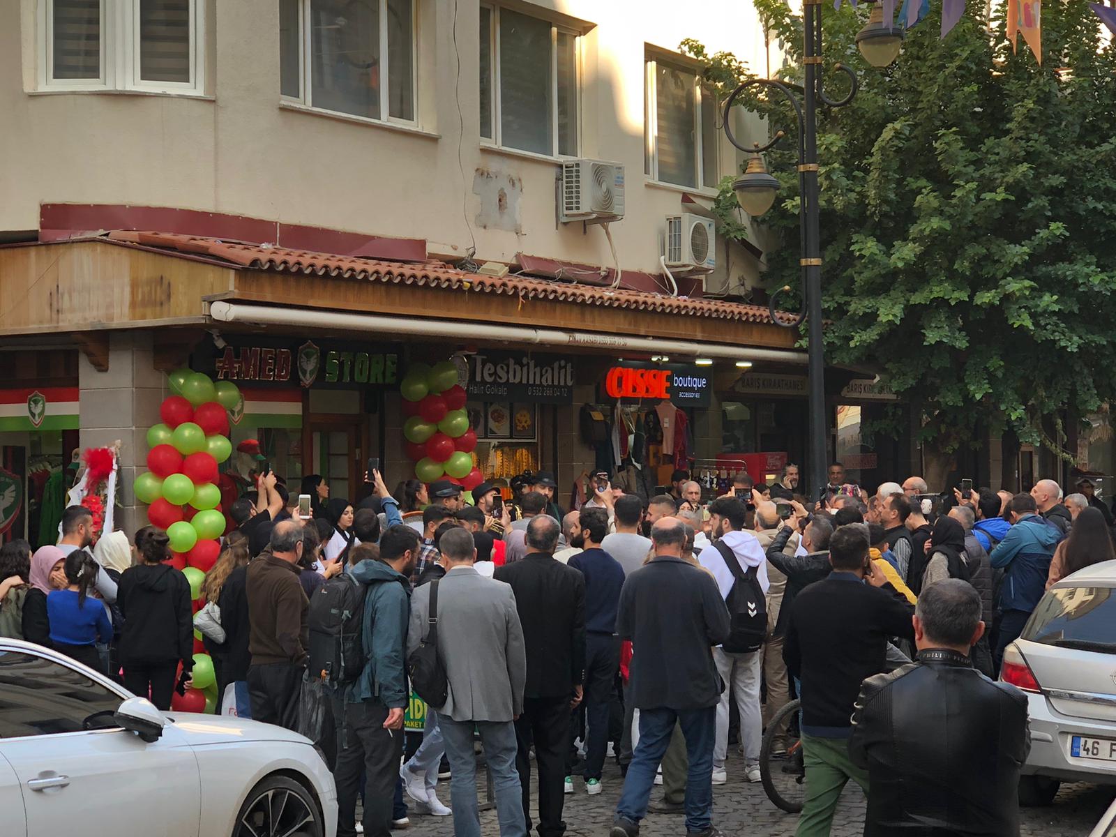 İzzetpaşa caddesinde bulunan mağazanın açılışına. Amedspor Yönetimi, Teknik heyeti, Amedspor Başkanı Aziz Elaldı, Diyarbakır Ticaret ve Sanayi Odası (DTSO) Başkanı Mehmet Kaya, Ticaret Borsası Başkanı Engin Yeşil katıldı.