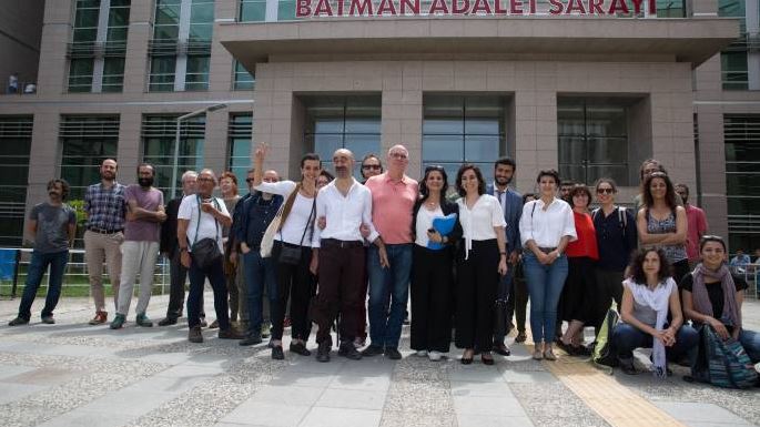 PKK Lideri Abdullah Öcalan’ın çağrısıyla 2013 yılında geri çekilme kararı alan PKK’nin bu sürecini konu alan “Bakur (Kuzey)” isimli belgeselin yönetmenleri Çayan Demirel ve Ertuğrul Mavioğlu hakkında “örgüt propagandası yapmak” iddiasıyla 5’er yıla kadar hapis istemiyle açılan davanın ikinci duruşması Batman 2. Ağır Ceza Mahkemesi’nde görüldü. Demirel ve Mavioğlu’nun avukatları ile hazır bulunduğu duruşmayı, HDP Milletvekili Ayşe Acar Başaran, HDP Batman İl Eşbaşkanı Berivan Helen Işık, akademisyen Sibel Özbudun, yazar Temel Demirel, KHK ile ihraç edilen akademisyen Ahmet Haşim Köse’nin yanı sıra çok sayıda belgesel yönetmeni, sinemacı ve avukat destek amacıyla izledi.