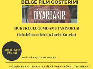 Av. Şerafettin Kaya ile Av. Ruşen Arslan' ın siyasi davaların savunması sırasında karşılaştıklarını konu alan "Hukukçuluğumdan Utanıyorum" film gösterisi yapılacaktır.