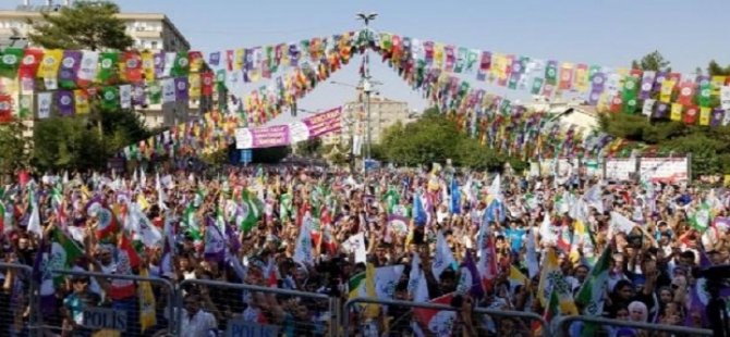 HDP’nin bugün Diyarbakır İstasyon Meydanı’nda yapılan mitingine binlerce kişi katılırken; alana girenler polis tarafından didik didik arandı.
