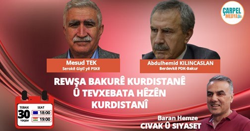 29.08.2020 cumartesi günü saat 12.00’da Sirac Kırıci’nın’ın programı “Rojeva Me ekranlarda yer alacak.