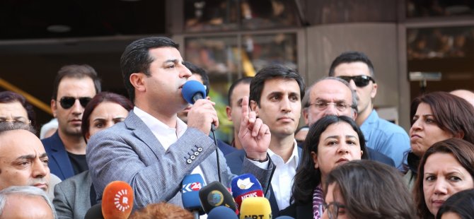 HDP Eşbaşkanı Selahattin Demirtaş, bugün Amed Büyükşehir Belediyesi'nin önünde Büyükşehir Belediyesi'nin eş başkanları Gültan Kışanak ile Fırat Anlı'nın gözaltına alınmasına sert tepki gösterdi.