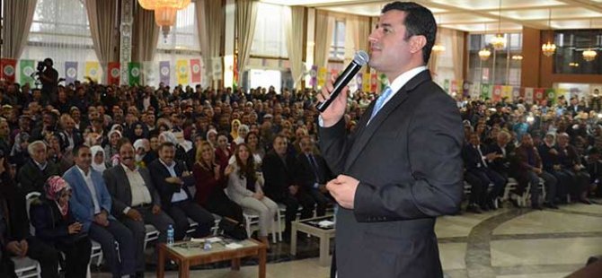Sonuçlar ne olursa olsun mücadeleden asla vazgeçmeyeceklerini vurgulayan Demirtaş’ın konuşmaları salonda bulunanlardan büyük alkış aldı.