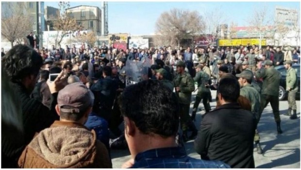 Meriwan’da eylemcilerin eylem yapmasına izin vermeyen İran pasdarları, eylemcileri dağıtmak için havaya ateş açtı.