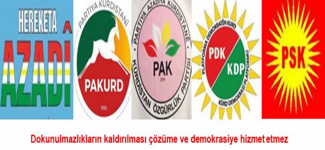 Hareketa Azadi, PAK, PAKURD, PDK-Bakur ve PSK 24 Mayıs 2016 da yayınladkları ortak açıklamada dokunulmazlıkların kaldırılmasına ilişkin Anayasa değişikliğinin çözüme ve demokrasiye hizmet etmeyeceğini ve AKP’nın baskıcı ve yasakçı politikası eleştirildi.