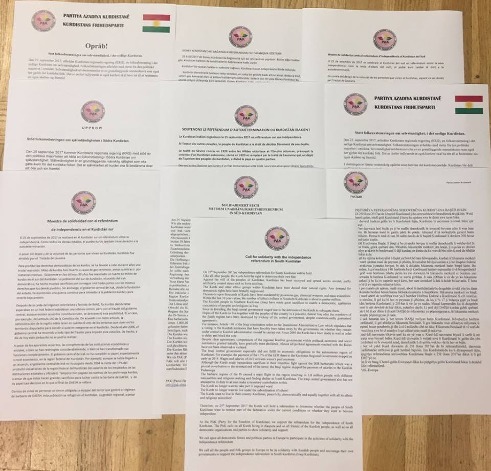 PAK (Kürdistan Özgürlük Partisi) Avrupa Örgütü bir çok Avrupa dilinde yayımladığı bir çağrıyla Avrupalıları Güney Kürdistan bağımsızlık referandumuyla dayanışmaya çağırdı.