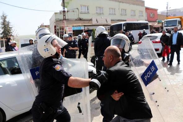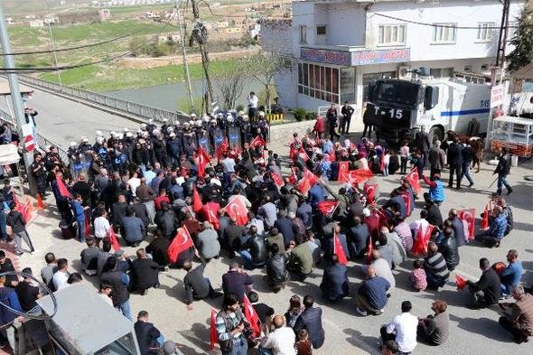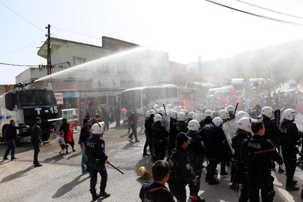 Köprü girişinde önlem alan polisin yürümelerine izin vermediği grup, burada oturma eylemi başlattı. Köprünün açılmaması üzerine polis, kalabalığa tazyikli suyla müdahale etti. Batman Emniyet Müdürlüğü'ne bağlı Çevik Kuvvet ekiplerinin, köprüdeki eylemcileri dağıttığı sırada arbede yaşandı.