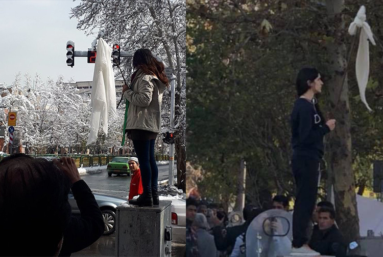 İran’da ekonomik gidişatı protesto amacıyla başlayan ve siyasi rejime tepkiye yönelen eylemlerin hemen öncesinde Vida Movahed isimli bir kadın, zorunlu başörtüsü kuralını protesto etmek için ülkenin başkenti Tahran’da bir sopaya bağlı başörtüsünü sallamış ve onu diğer kadınlar takip etmişti.