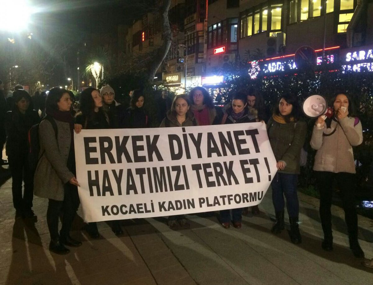 Süreyya Operası önünden Mehmet Ayvalıtaş Meydanına doğru yürüyen kadınlar "Diyanet elini kadınlardan çek" sloganları attı.