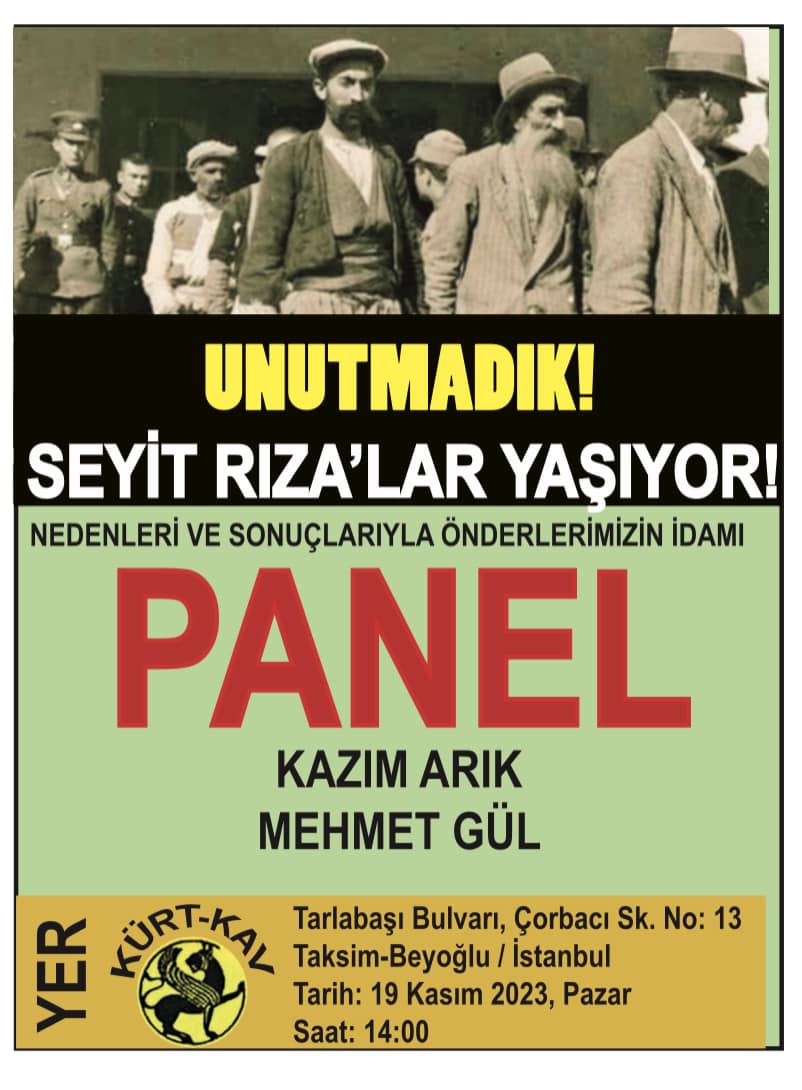 KURD-KAV Seyid Rıza ve yol arkadaşlarını idam edilişlerinin 86. Yılında düzenleyeceği bir panele ile anacak.