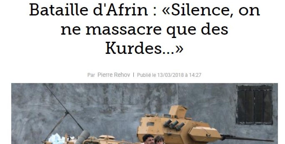 Fransız Le Figaro gazetesi, savaş muhabiri Pierre Rehov’un Efrîn’deki Türk işgal saldırılarına ilişkin bir makalesine yer verdi. Makalede, “Sessiz olun ! Sadece Kürtleri katlediyoruz” başlığı kullanıldı.