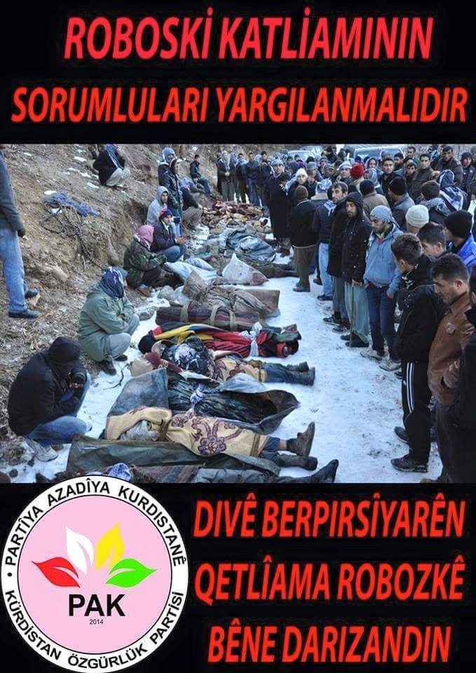 Kürditan Özgürlük Partisi (PAK) Genel Başkanı Mustafa Özçelik, 6 yıl önce kamu vicdanında bir yara daha açan Roboski katliamı münasebetiyle yayınladığı mesajı:
