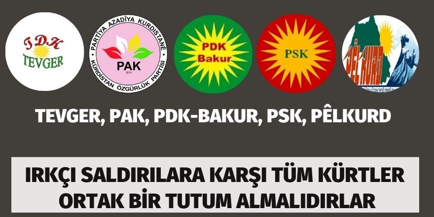 TEVGER, PAK, PDK-BAKUR, PÊLKURD, PSK: Irkçı saldırılara karşı tüm Kürtler ortak bir tutum almalıdırlar