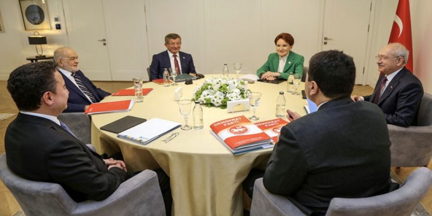 CHP, İYİ Parti, DP, Saadet, Gelecek ve DEVA Partisi’nin oluşturduğu masanın Gelecek Partisi lideri Ahmet Davutoğlu ev sahipliğindeki onuncu toplantısı dokuz buçuk saat sürdü.
