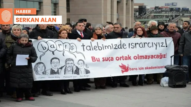 11 Ocak 2016’da yayımlanan ‘Bu suça ortak olmayacağız’ başlıklı metin 2 bin 212 akademisyen tarafından imzalandı. Cumhurbaşkanı Recep Tayyip Erdoğan, bildiriyi imzalayanları “aydın müsveddesi, cahil, karanlık” olarak nitelendirdi, ihanetle suçladı. Erdoğan’ın bu açıklamalarının ardından akademisyenler hakkında “terör örgütü propagandası yapmak” suçlamasıyla hızla soruşturmalar açıldı, bazıları tutuklandı. Süreç bununla da sınırlı kalmadı, yüzlerce akademisyen KHK ile görevlerinden ihraç edildi, 406 akademisyenin pasaportlarına el konuldu. Yedi yıllık bu dönemde istifa eden, edilmeye zorlanan, emekli olan, olmaya zorlanan, işten çıkarılan ve OHAL KHK'sı ile kamu görevinden ihraç edilen akademisyen sayısı 549 oldu.