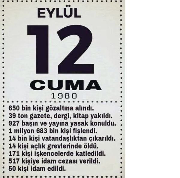 12 Eylül 1980’nin toplumsal, siyasal ve ekonomik kırılmanın başlangıç tarihi ve simgesi olarak hafızalarda yer alması koca bir zaman dilimine mal oldu. Buna rağmen hala yeterince bilince çıkartılmadığını; siyasal, toplumsal ve sosyolojik boyutlarıyla ciddi bir muhasebe yapılmadığını, geçmişle yüzleşmeye her nedense o sürecin aktörleri, siyasal oluşumları ve politik odaklarının suskunluğu, ya da üç maymun tavrının hakim olması sonucu, 44 yıldır devam eden toplumsal bir travmanın artçı sonuçlarıyla mücadele etmekteyiz.