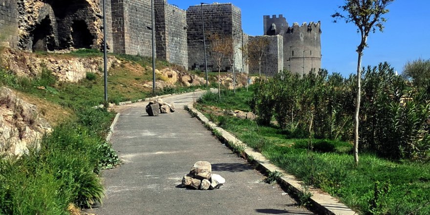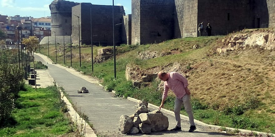 Diyarbakır’ın Urfa kapı ile Mardin Kapı arasındaki Surların dış kesiminde bulunan Millet Bahçesi’nde yapılan bisiklet yolunu araçlar kullanıp tehlike yaratınca vatandaşlar yola kocaman taşlar koyarak önlem aldı.