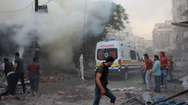 BM Acil Yardım Koordinatörü Mark Lowcock, "28 Nisan'dan beri, Dünya Sağlık Örgütü ve sağlık çalışanları, en az 18 sağlık merkezinin bombalamalar, havan topu saldırıları ya da çatışmalar nedeniyle ya zarar gördüğünü ya da yıkıldığını tespit etti" dedi.