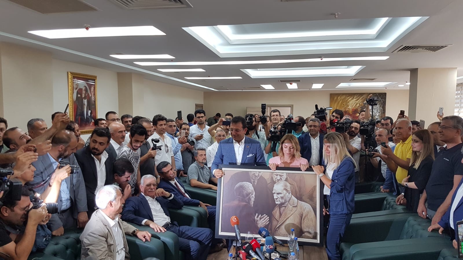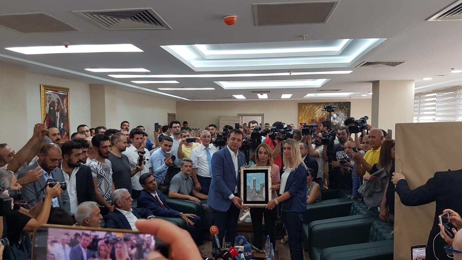 İmamoğlu ise Eşbaşkan Yılmaz’a, İstanbul seçimlerinin yenilenmesi ardından belediyeye atanan kayyım tarafından odasında sökülen Atatürk portresini hediye etti. İmamoğlu, Diyarbakır Büyükşehir Belediyesi Eşbaşkanı Mızraklı’ya da İstanbul’un sembolleri arasında yer alan Kız Kulesi’nin bulunduğu plaket hediye etti.