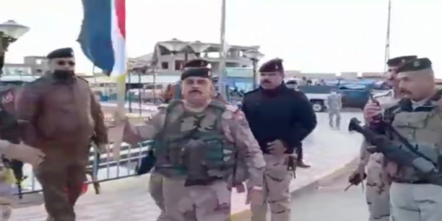 Irak televizyonlarında yer alan görüntülerde Irak komutanı Öcalan'ın olduğu standı kaldırdıktan sonra Irak bayrağını açarak “Şengal Irak’tır. Burada Irak bayrağını kaldırıp bir teröristin bayrağını asanı idam ederim” şeklinde tehdit ettiği görülüyor. Daha sonra Iraklı komutanın Irak bayrağını öperek şehre astığı görülüyor.