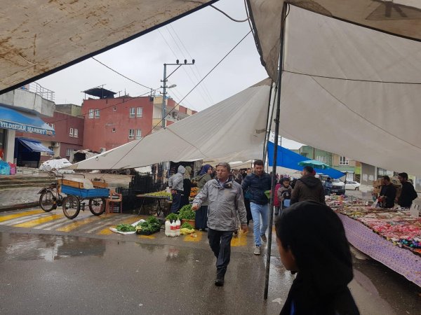 Yağmura rağmen seçim çalışmalarına hız kesmeden devam eden Ekmen, ardından Diyarbakır Caddesi boyunca bildiri dağıtarak destek istedi.