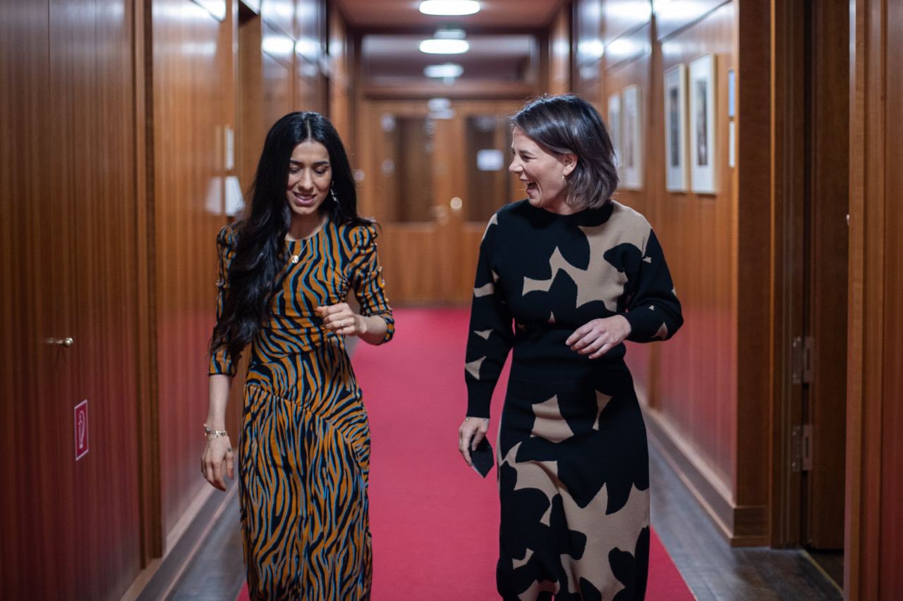 Nobel Barış Ödülü sahibi Ezidi Kürt aktivist Nadia Murad, Almanya Dışişleri Bakanı Annalena Baerbock ile bir araya geldi.