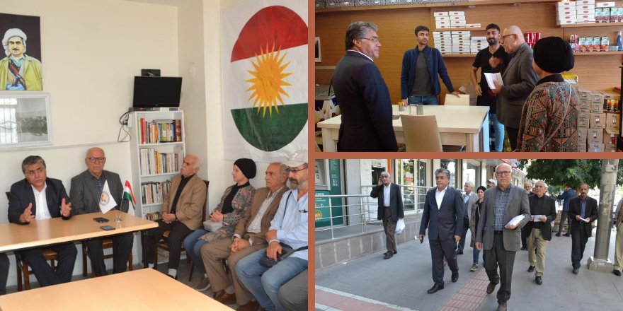 Esnaf ziyaretinde PAK Genel Başkanı Mustafa Özçelik, PAK'ın 8. Kuruluş Yıldönümü ile ilgili bilgi verdi ve Kürt milletinin acil taleplerini içeren el ilanları esnafa dağıtıldı.