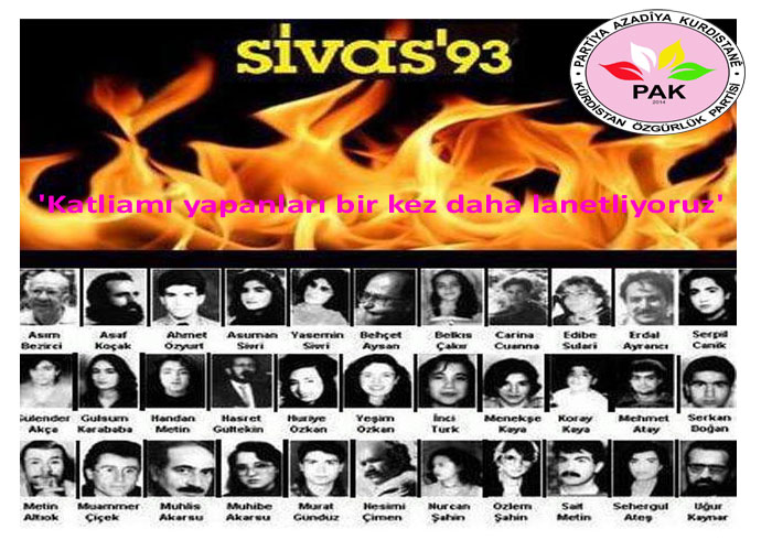 PAK (Partîya Azadîya Kurdistanê- Kürdistan Özgürlük Partisi) Basın ve İletişim Bürosu Sivas Madımak Katliamının 23. yıl dönümünde andı