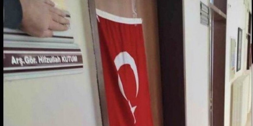 Rektör F. Göktaş, Akademisyen H. Kutu'un odasının kapısına Türk bayrağı astı