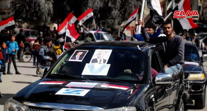8 Mart’ta da Humus kentindeki Baas Üniversitesi Meydanı'nda Rusya'yı desteklemek için dayanışma eylemi yapılmış, eyleme çok sayıda kişi katılmıştı.