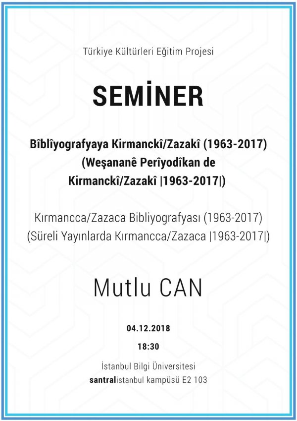 Seminer: Kırmancca/Zazaca Bibliyografyası (1963-2017)