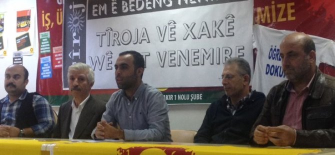 Tîroj Dergisi’nin Eğitim Sen Diyarbakır 1 Nolu Şube binasında düzenlediği basın toplantısına Kürt Yazarlar Derneği, Kürt PEN, Kurdî-Der, Türkiye Yazarlar Sendikası, Evrensel Basım Yayın, Hîva Yayınları, Vate Yayınları’ndan temsilciler katıldı. Burada açıklamayı Tîroj Dergisi Diyarbakır Temsilcisi Reşo Ronahî yaptı. Ronahî, Resmi Gazete’de yayınlanan son Kanun Hükmünde Kararname (KHK) ile Tîroj, Evrensel Kültür ve Özgürlük Dünyası dergileri, Azadiya Welat, Özgür Gündem gazeteleri ile DİHA ve JİNHA gibi haber ajanslarının yer aldığı 15 medya kuruluşunun kapatıldığını hatırlatarak eleştirdi.