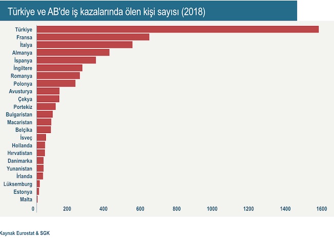 Dünya'da iş kazalarını önlemek için yapılan düzenlemeler ve alınan önlemlerin yeterli olmamasından kaynaklı iş kazaları ile iş cinayetlerinin sayısı artıyor. Avrupa Birliği'nin (AB) resmi istatistik ofisi Eurostat ve Sosyal Güvenlik Kurumu'nun (SGK) verilerine göre Türkiye iş cinayetlerinde en fazla insanın hayatını kaybettiği ülkeler sıralamasında birinci.