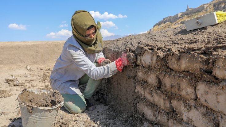 Van Kalesi'nin kuzeyindeki höyükte yürütülen kazı çalışmalarında ortaya çıkarılan ve 2 bin 700 yıl önce Urartu aristokrat kesiminin yaşadığı değerlendirilen yapılar, orijinaline uygun kerpiçlerle yeniden inşa edildi.
